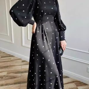 Stylish Printed Round Neck Long Sleeve Dress