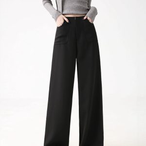 Versatile wide-leg pants for autumn and winter, high-waisted, slimming, casual style