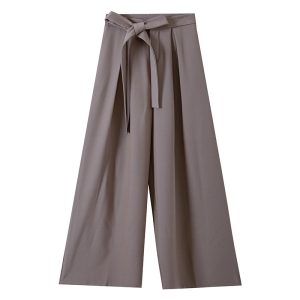 Flowing floor-length trousers, sophisticated, loose-fitting, high-waisted, belted trousers