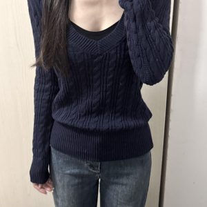 V Neck Cable Knit Slim Fit Sweater Top