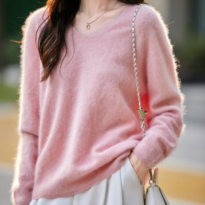 V Neck Seamless Wool Cashmere Knit Sweater