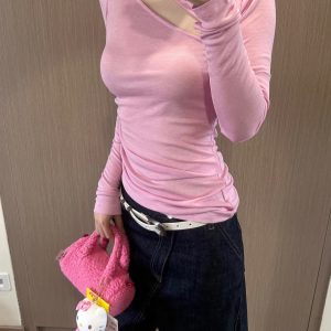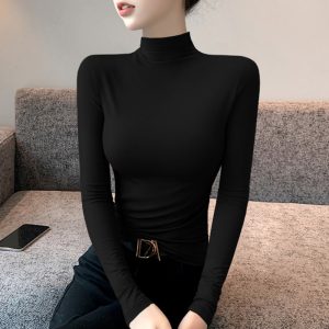 Half turtleneck design long sleeve bottoming shirt for women wearing t-shirt in autumn and winter high-end top