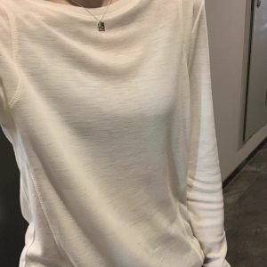 Slim Fit Asymmetric Shoulder Wool Blend Top