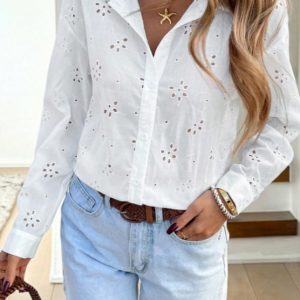 Hollow embroidery all-match solid color women’s cardigan long-sleeved bottoming shirt