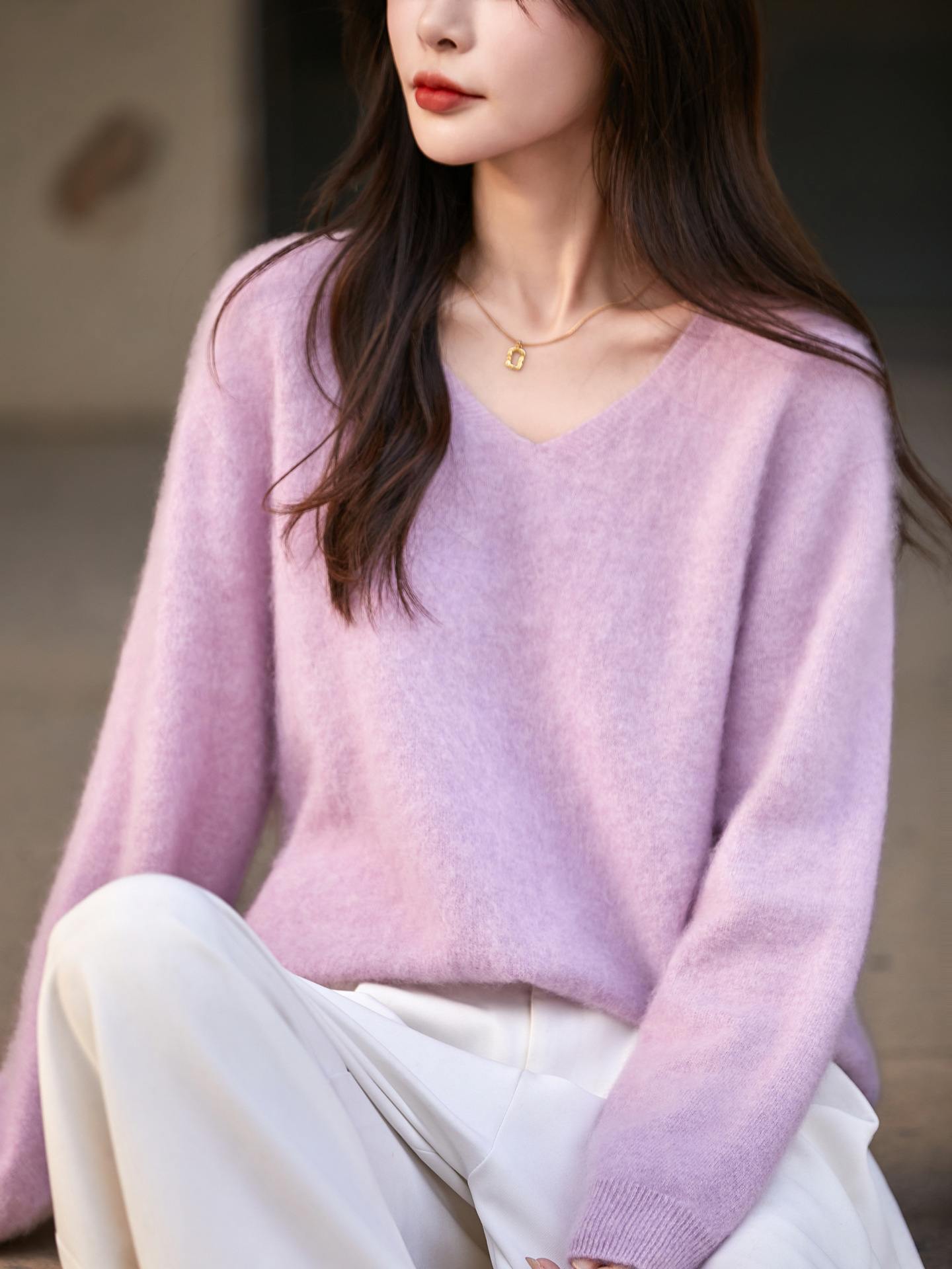 A refined and timeless piece crafted for comfort and elegance, this V-neck knit sweater is made from a seamless blend of wool and cashmere. The soft, lightweight fabric offers warmth without bulk, making it ideal for layering or wearing on its own during cooler months.